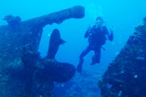The first day of diving on Sunday already brought two novelties to my short diving curriculum. As we only did shore dives where I did my certification, Dahab in Egypt that is, the boat diving was a first, but the more exciting premiere was the wreck diving. It was still impressive, although we had to go to another one than planned due to serious swells. We’d catch up a couple of days later though.
