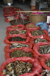 After a couple of hours we ended up at Bai Sha Town. The next bigger place north of Yangshuo. There we went to see the market. A big market also with a covered part where for once we seemed to be the absolutely only tourists, as the stares and the big smiles were way more frequent than usual.